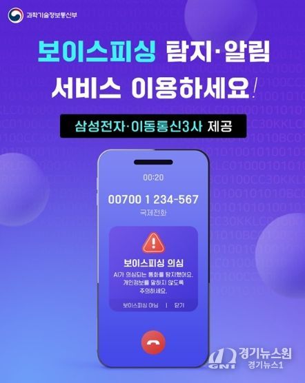 국민들의 보이스피싱 피해 방지를 위해 삼성전자와 이동통신 3사가 제공하는 인공지능 기반 보이스피싱 탐지·알림 서비스를 이용해 주시기 바랍니다.