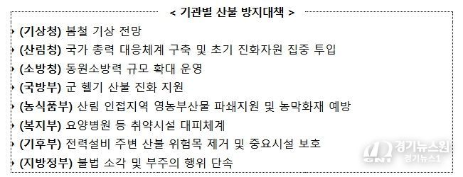 [경기뉴스원/경기뉴스1] | 행정안전부 2월 20일 김광용 재난안전관리본부장 주재로 ‘봄철 산불방지 관계기관 대책회의’를 개최*했다.