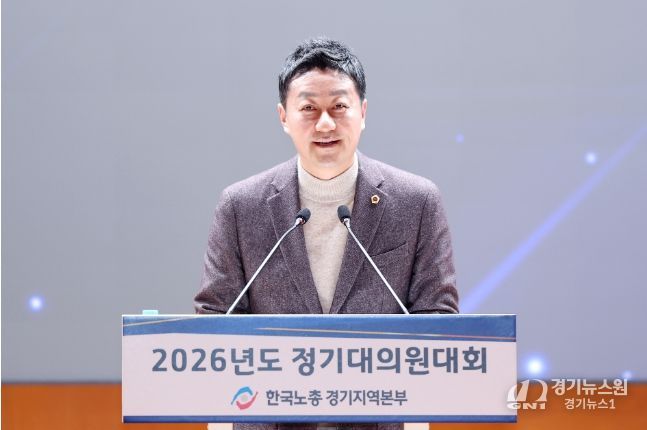 [경기뉴스원/경기뉴스1] | 경기도의회 김진경(더민주·시흥3) 의장은 24일 열린 한국노총 경기지역본부(의장 김연풍) 2026년 정기대의원대회에서 노동자가 중심이 되는 노동의 지속가능성을 강조했다.