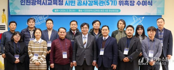 [경기뉴스원/경기뉴스1] | 인천광역시교육청은 지난 25일 시교육청 영상회의실에서 학교 시설공사의 투명성과 신뢰성을 높이기 위한 ‘시민 공사감독관 5기 위촉식’을 개최했다.