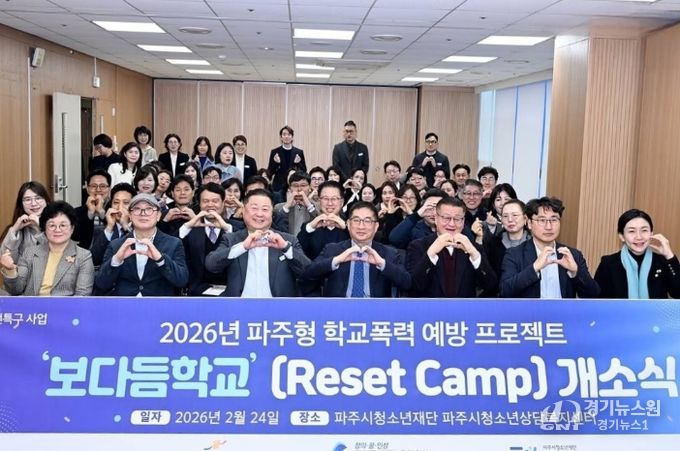 [경기뉴스원/경기뉴스1] | 파주시는 2월 24일 운정행복센터 6층 (재)파주시청소년재단 파주시청소년상담복지센터에서 교육발전특구 사업의 일환인 ‘보다듬학교(Reset Camp)’ 현판식을 개최하고 본격적인 운영을 알렸다.