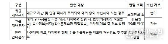 앞으로 주민 대피가 필요한 긴급 상황은 반드시 ‘위급재난문자’ 또는 ‘긴급재난문자’로 발송해 국민께 휴대전화 최대 음량의 알림 소리(40dB 이상 ‘삑’ 소리)로 위험 상황을 알린다.