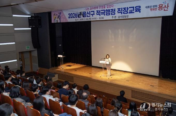 [경기뉴스원/경기뉴스1] | 서울 용산구가 지난 26일 용산아트홀 소극장 가람에서 소속 공무원과 용산구시설관리공단 직원을 대상으로 적극행정 직장교육을 실시했다.