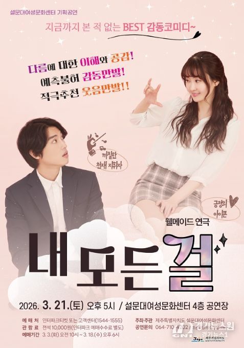 [경기뉴스원/경기뉴스1] | 제주특별자치도 설문대여성문화센터는 3월 21일 오후 5시 센터 4층 공연장에서 ‘설문대 문화의 날’ 3월 기획공연으로 연극 ‘내 모든 걸’을 선보인다고 밝혔다.