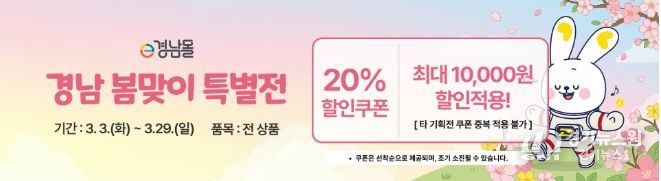 [경기뉴스원/경기뉴스1] | 경상남도와 (재)경상남도투자경제진흥원이 운영하는 e경남몰이 3월 3일부터 예산 소진 시까지 ‘2026년 봄맞이 할인 기획전’을 진행한다.