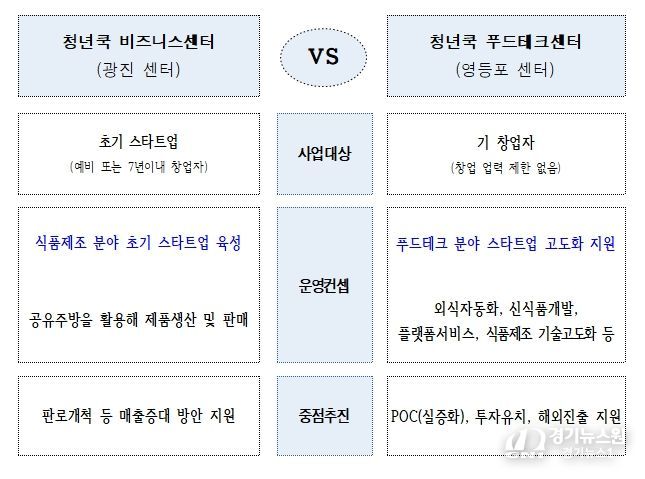 ‘서울시 청년 쿡 비즈니스·푸드테크 센터’는 식품 제조 분야 청년 스타트업에 대한 성장을 지원하는 전문 보육 기관이다. 서울시는 공간은 물론, 사업화 자금, 멘토링, 판로 개척 지원 등을 통해 지원기업들이 경쟁력을 갖출 수 있도록 전방위적으로 지원하고 있다.