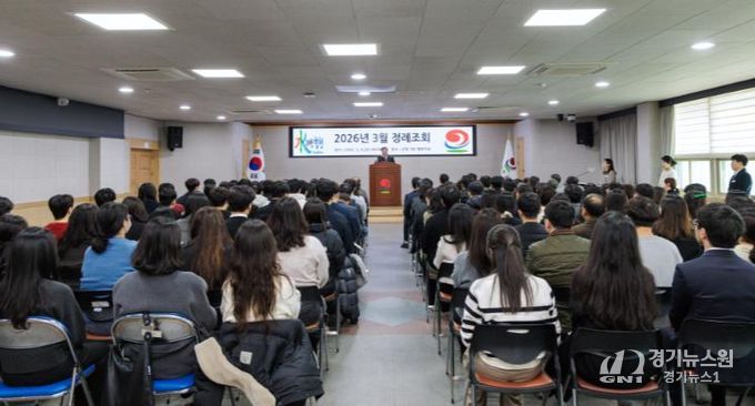 [경기뉴스원/경기뉴스1] | 합천군은 지난 4일 군청 대회의실에서 공직자 100여 명이 참석한 가운데 2026년 3월 정례 조회를 개최했다.