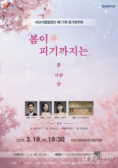 [경기뉴스원/경기뉴스1] | 충남 서산시는 오는 3월 19일 오후 7시 30분 문화회관 대공연장에서 서산시립합창단 제17회 정기연주회 ‘봄이 피기까지는’이 개최된다고 밝혔다.