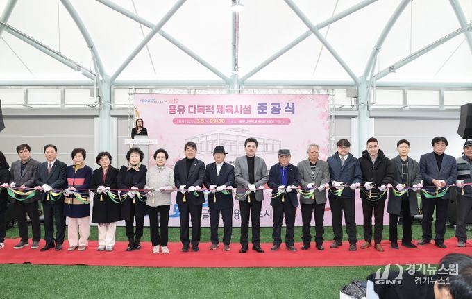 이날 준공식에서는 기념사·축사, 테이프 자르기, 기념 촬영, 시설 순회 등을 진행하며, 다목적 체육시설의 준공을 축하했다.