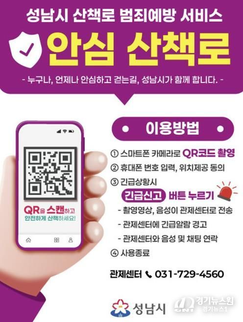 [경기뉴스원/경기뉴스1] | 성남시는 시민들이 보다 안심하고 산책로를 이용할 수 있도록 영장산과 불곡산 일대 산책로에 ‘범죄예방 서비스’를 6일부터 도입한다.