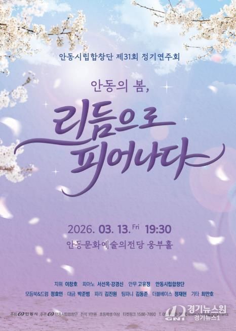 [경기뉴스원/경기뉴스1] | 안동시를 대표하는 전문예술단체인 안동시립합창단이 오는 3월 13일 오후 7시 30분 안동문화예술의전당 웅부홀에서 제31회 정기연주회 ‘안동의 봄, 리듬으로 피어나다’를 개최한다.