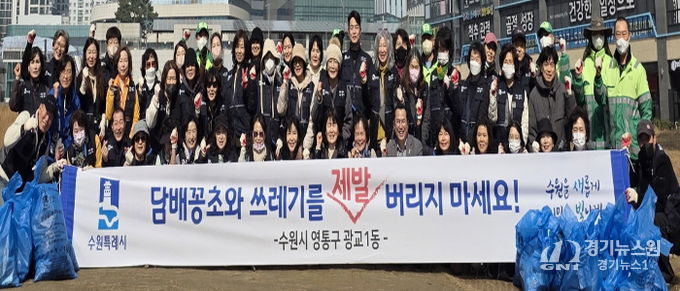 [경기뉴스원/경기뉴스1] | 영통구 광교1동 행정복지센터는 지난 3월 5일 통장협의회와 환경관리원 등 60여 명이 참여한 가운데 무단투기 지역을 중심으로 봄맞이 환경정비 활동을 실시했다.