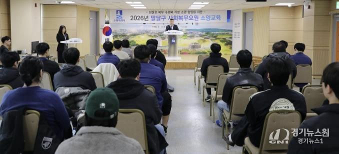 [경기뉴스원/경기뉴스1] | 수원시 팔달구는 지난 5일 팔달구청 대회의실에서 사회복무요원 전원을 대상으로 2026년 상반기 소양교육을 실시했다.