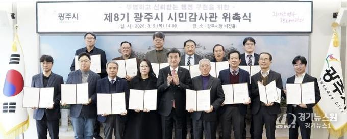 제8기 시민감사관은 총 20명으로, 광주시 거주 시민으로 구성된 명예감사관 5명과 전문 자격 및 실무 경험을 갖춘 전문감사관 15명으로 구성됐다. 임기는 2029년 3월까지 3년이다.