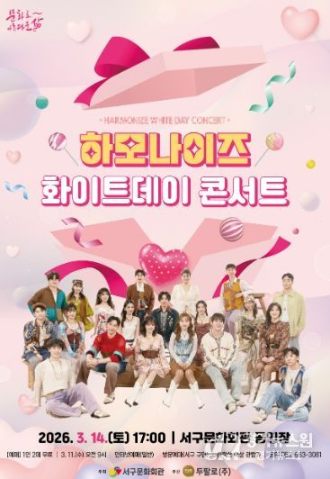 [경기뉴스원/경기뉴스1] | 서구문화회관은 3월 14일 오후 7시 서구문화회관 공연장에서 목소리로 세상에 희망과 기쁨을 전하는 대한민국 대표 쇼콰이어그룹 하모나이즈를 초청해'화이트데이 콘서트'를 개최한다.
