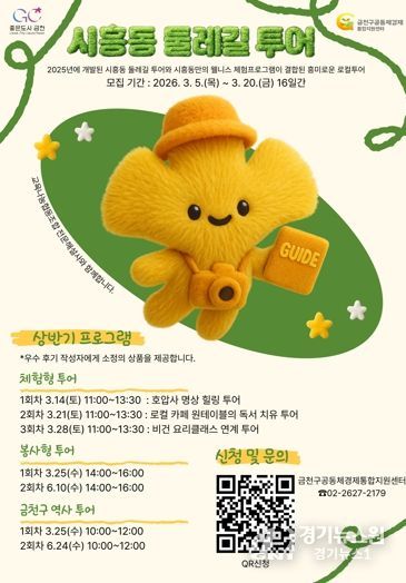 [경기뉴스원/경기뉴스1] | 금천구는 지역의 고유한 생태·역사·문화 자원을 둘러볼 수 있는 ‘시흥동 둘레길 투어’를 오는 3월부터 본격 운영한다고 밝혔다.