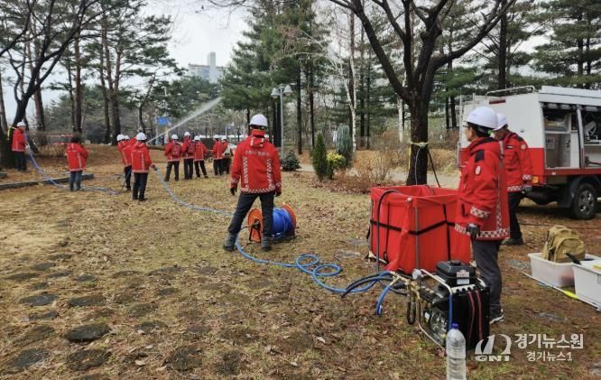[경기뉴스원/경기뉴스1] | 수원시 영통구는 지난 6일 영통구청 인근 근린공원에서 산불 발생 상황을 가정한 산불대비 자체 모의훈련을 실시했다.