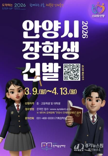 [경기뉴스원/경기뉴스1] | 안양시 인재육성재단은 안양시 중·고등학생 및 대학생을 대상으로 2026년 상반기 장학생을 선발한다고 9일 밝혔다.