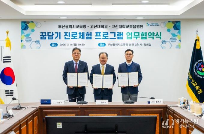 [경기뉴스원/경기뉴스1] | 부산광역시교육청은 9일 오전 교육청 회의실에서 고신대학교, 고신대학교복음병원과 ‘꿈담기 진로체험 프로그램’운영을 위한 업무협약을 체결했다.