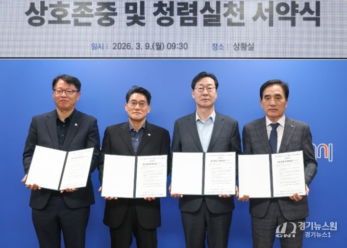 [경기뉴스원/경기뉴스1] | 화성특례시는 9일 시청 상황실에서 정명근 시장과 실·국·소장 등 4급 이상 고위직 공무원 및 공직 유관단체장이 참석한 가운데 ‘상호존중 및 청렴실천 서약식’을 개최하고 시민이 체감하는 청렴행정 구현을 위한 실천 의지를 다졌다.
