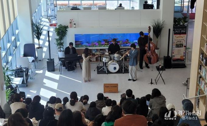 [경기뉴스원/경기뉴스1] | 오산시는 지난 7일 청학도서관 1층 커뮤니티스테어에서 열린 재개관 기념 공연 ‘2026 음악이 흐르는 도서관 콘서트 – 재즈&북(Book)의 향연: JAZZ VIBE’가 시민들의 큰 호응 속에 성황리에 마무리됐다고 밝혔다.