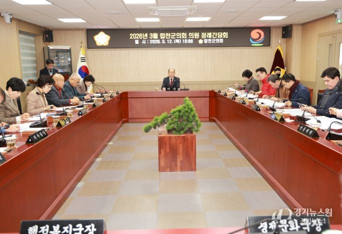 [경기뉴스원/경기뉴스1] | 합천군의회는 12일 합천군의회 간담회장에서 2026년 3월 합천군의회 의원 정례간담회를 개최했다고 전했다.