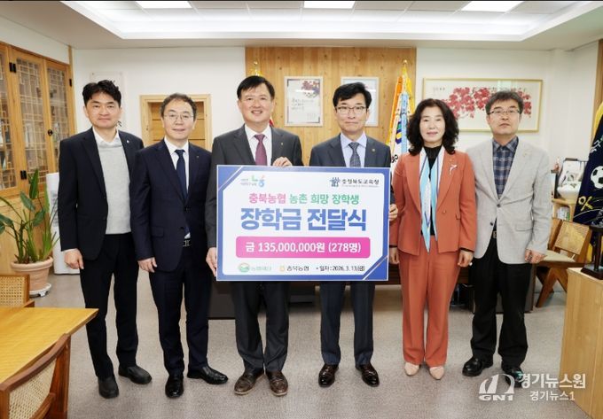 [경기뉴스원/경기뉴스1] | 충청북도교육청은 13일, 충북농협(본부장 이용선)이 지원한 농촌지역 학생 대상 희망 장학금 전달식을 개최했다.