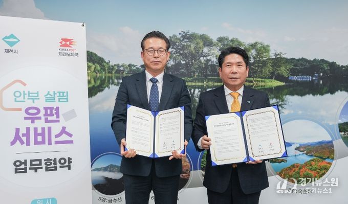 [경기뉴스원/경기뉴스1] | 제천시는 지난 12일 제천우체국(국장 이준규)과 고독사 예방을 위한‘안부살핌 우편서비스’사업의 성공적인 추진을 위한 업무협약을 체결했다.