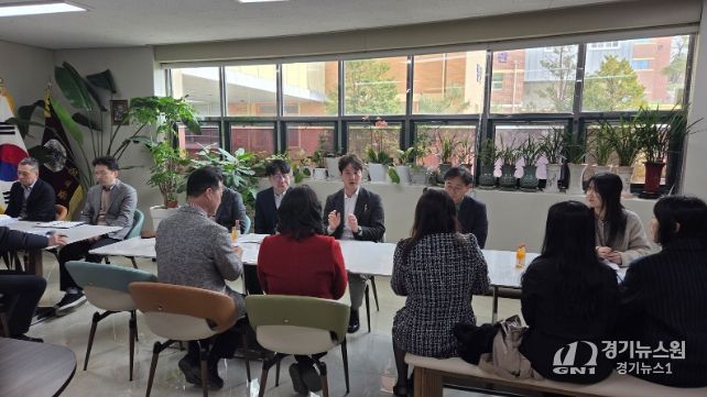 [경기뉴스원/경기뉴스1] | 경기도의회 교육행정위원회 김일중 의원(국민의힘, 이천1)은 11일 이천 증포중학교 교장실에서 증포중학교 교육환경 개선 방안을 논의하기 위한 정담회를 주재하고, 신관 교실이 정상적인 학습공간으로 활용될 수 있도록 교육청의 적극적인 지원 필요성을 강조했다.