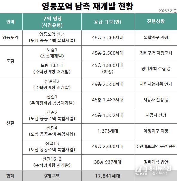 [경기뉴스원/경기뉴스1] | 영등포구가 영등포역 남측 일대를 약 1만 8,000세대 규모의 ‘초고층 신도시’로 조성하는 대규모 개발을 본격 추진한다. 영등포역을 중심으로 도림동과 신길동 일대의 노후 주거지가 최고 49층 높이의 고층 단지로 탈바꿈하며, 영등포의 스카이라인을 새롭게 그릴 전망이다.