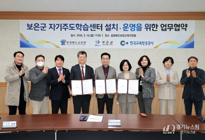[경기뉴스원/경기뉴스1] | 충청북도교육청은 16일, 보은교육지원청에서 보은군, 한국교육방송공사와 보은군 자기주도학습센터 설치‧운영을 위한 업무협약을 체결했다.