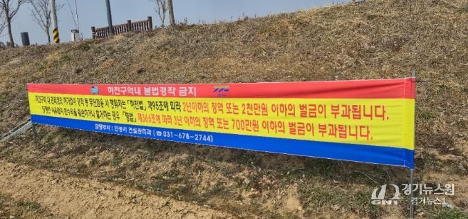 [경기뉴스원/경기뉴스1] | 안성시가 하천구역 내 불법 점용 행위를 뿌리 뽑고 무단 경작을 예방하기 위해 관내 지방하천 일대에 ‘경작 금지’ 홍보 현수막을 설치하고 집중 점검에 나섰다.