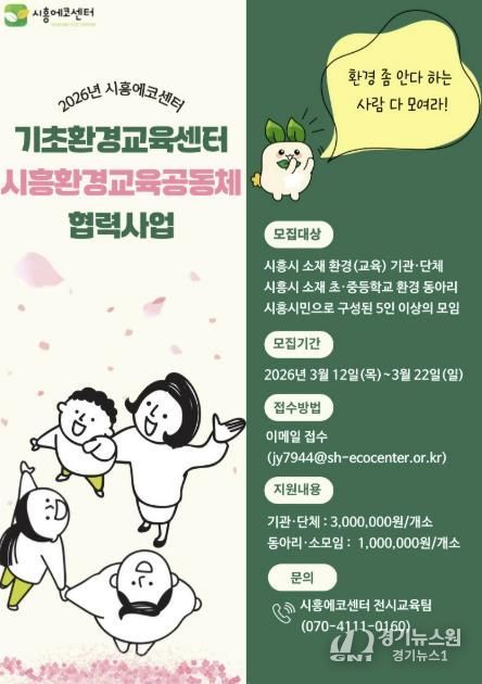 [경기뉴스원/경기뉴스1] | 시흥시는 지역 공동체 간 협력을 바탕으로 환경교육을 활성화하고, 환경교육 네트워크를 강화하기 위해 ‘2026년 기초환경교육센터-시흥환경교육공동체 협력사업’을 추진한다.