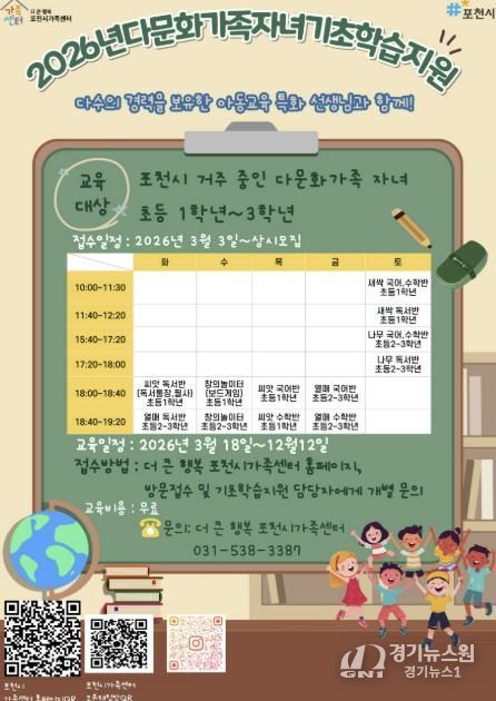 [경기뉴스원/경기뉴스1] | 포천시 더 큰 행복 포천시가족센터는 다문화가족 자녀의 안정적인 학교생활 적응과 학습 격차 해소를 위해 ‘다문화가족 자녀 기초학습지원 사업’을 18일부터 본격 운영한다.