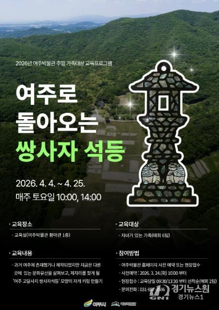 [경기뉴스원/경기뉴스1] | 여주시 여주박물관은 오는 4월 주말을 맞아 가족이 함께 지역 문화유산의 가치를 배우고 체험할 수 있는 교육프로그램 '여주로 돌아오는 쌍사자 석등'을 운영한다.