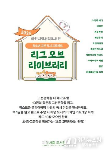 [경기뉴스원/경기뉴스1] | 이천시 서희도서관은 청소년 독서문화 확산을 위해 3월 21일부터 청소년 고전독서 프로젝트를 새롭게 운영한다.