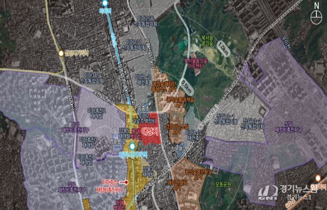 [경기뉴스원/경기뉴스1] | 지하철 4호선 미아사거리역 롯데백화점 뒤 300m 역세권에 최고 높이 45층, 1,600세대 대규모 아파트 단지가 들어선다.