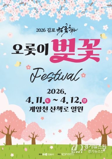 [경기뉴스원/경기뉴스1] | 김포시가 오는 4월 11일부터 12일까지 이틀간 김포 대표 벚꽃 명소인 계양천 산책로 일원에서 ‘2026 김포 벚꽃축제’를 개최한다.