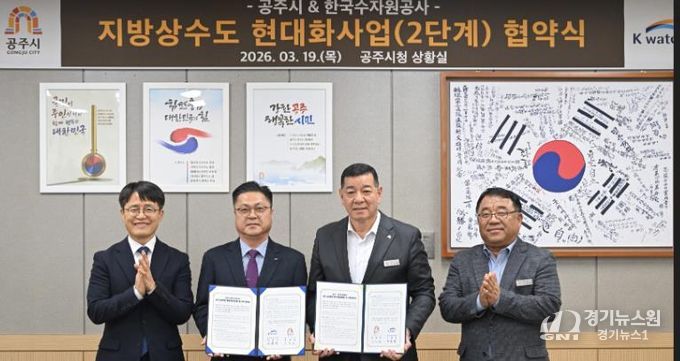 [경기뉴스원/경기뉴스1] | 공주시는 지난 19일 시청 상황실에서 한국수자원공사(K-water)와 지방상수도 현대화사업(2단계) 위수탁 협약을 체결하고 노후 상수관망 정비 사업을 본격 추진한다.