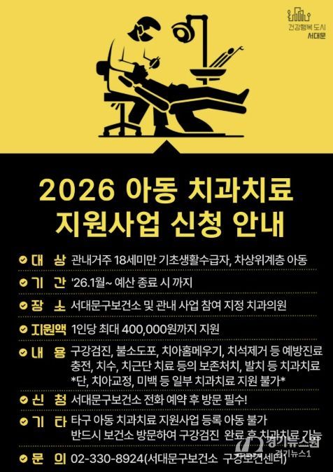 [경기뉴스원/경기뉴스1] | 서대문구가 취약계층 아동의 구강건강을 위해 ‘아동 치과 치료 지원사업’을 확대 추진한다고 20일 밝혔다.