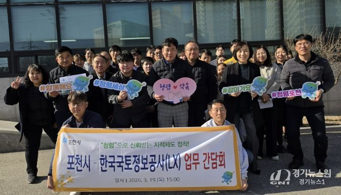 [경기뉴스원/경기뉴스1] | 포천시는 지난 19일 한국국토정보공사(LX) 포천지사 직원들과 지적측량의 정확성을 높이고 지적행정의 공신력을 제고하기 위한 ‘지적측량성과 표준화 간담회’를 개최했다.
