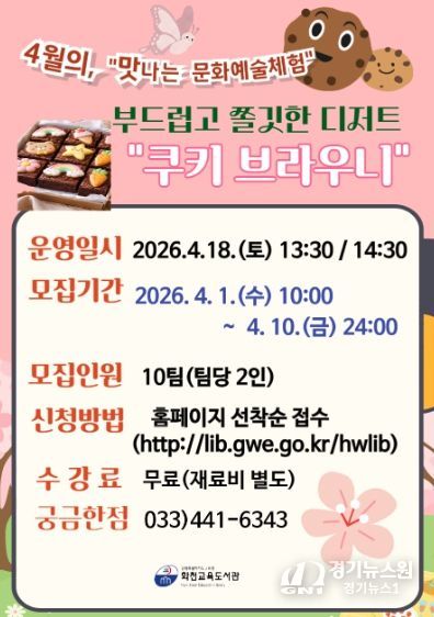 이번 특강은 4월 11일부터 5월 16일까지 6회 진행되며, 수강신청은 3월 20일 10시부터 화천교육도서관 누리집에서 접수한다.