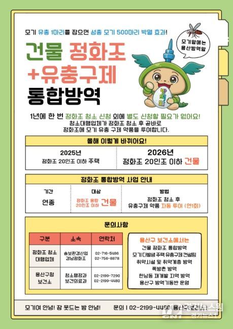 특히 올해는 맞춤형 돌봄을 결합한 ‘용산 보살핌 방역’ 서비스를 새롭게 추진한다. 기존 방역 활동에 복지 기능을 더해 단순 소독을 넘어 취약계층의 건강과 생활까지 살피는 데 초점을 맞췄다.