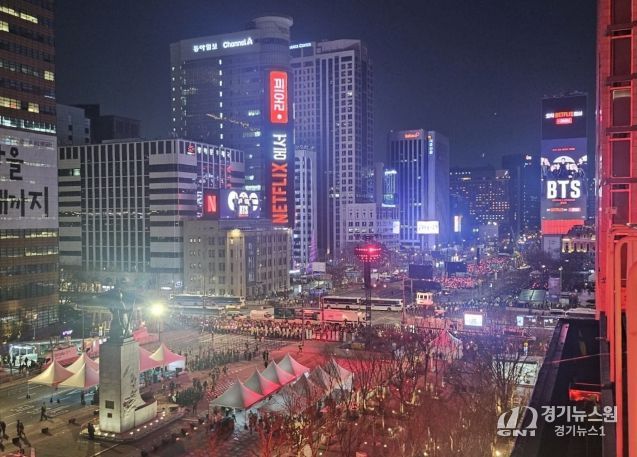 [경기뉴스원/경기뉴스1] | 종로구는 3월 21일 광화문스퀘어 옥외광고물 자유표시구역에서 열린 BTS 컴백 공연을 계기로, 광화문 일대를 빛과 미디어가 결합한 초대형 무대로 구현했다.