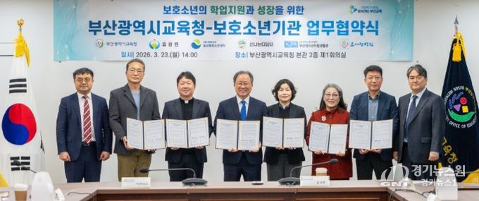 [경기뉴스원/경기뉴스1] | 부산광역시교육청은 지난 23일 오후 교육청 회의실에서 보호소년기관과 '소년법'상 보호처분을 받은 학생의 학업중단 예방과 학습 여건 조성을 위한 업무협약(MOU)을 체결했다고 밝혔다.