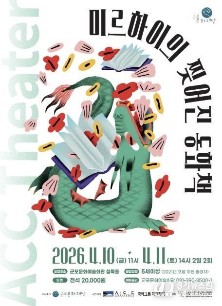[경기뉴스원/경기뉴스1] | 군포문화재단은 어린이와 가족이 함께 관람할 수 있는 공연 '미르하이의 찢어진 동화책'을 4월 10일~11일 군포문화예술회관 철쭉홀에서 개최한다고 밝혔다. 이번 공연은 2026 국립아시아문화전당재단 어린이 공연 유통 공모사업의 일환으로, 국립아시아문화전당(ACC) 창·제작 어린이 공연을 지역에 소개하기 위해 마련됐다.