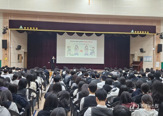 [경기뉴스원/경기뉴스1] | 경상북도포항교육지원청은 새 학기를 맞아 관내 고등학교를 대상으로 안전하고 평화로운 학교 문화 조성을 위한 ‘찾아가는 맞춤형 학교폭력 예방교육’을 3월 23일 오천고등학교 전교생 570여 명을 대상으로 실시했다.