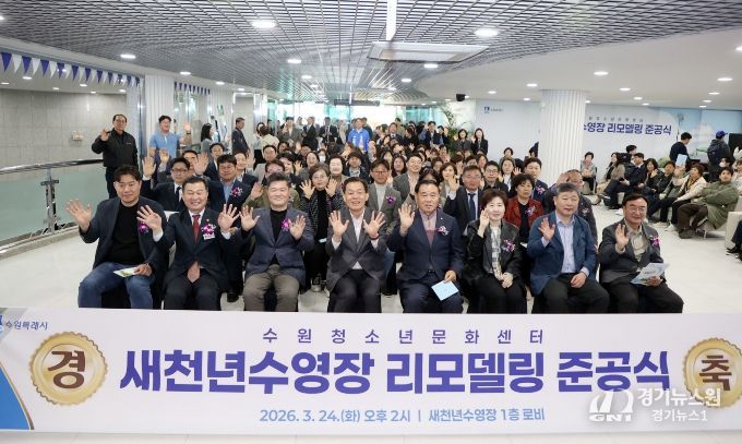 [경기뉴스원/경기뉴스1] | 수원특례시의회는 24일 청소년문화센터 내 새천년수영장에서 열린 '새천년수영장 리모델링 공사 준공식'에 참석해 준공을 축하했다.