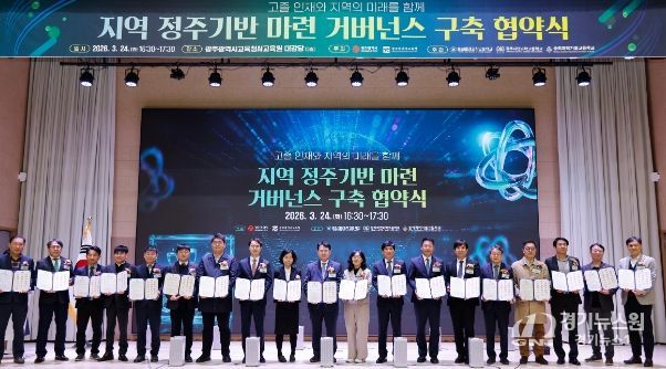 [경기뉴스원/경기뉴스1] | 광주시교육청과 광주시는 24일 광주AI교육원 대강당에서 이정선 광주시교육감, 김기숙 광주시 교육청년국장 등이 참석한 가운데 ‘고졸 인재와 지역의 미래를 함께, 지역 정주기반 마련 거버넌스 구축 협약식’을 개최했다.