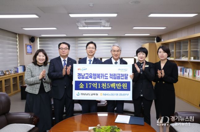 [경기뉴스원/경기뉴스1] | 경상남도교육청은 24일 NH농협은행으로부터 ‘경남교육행복카드’ 사용으로 적립된 포인트 17억 1,585만 6,930원을 전달받았다.
